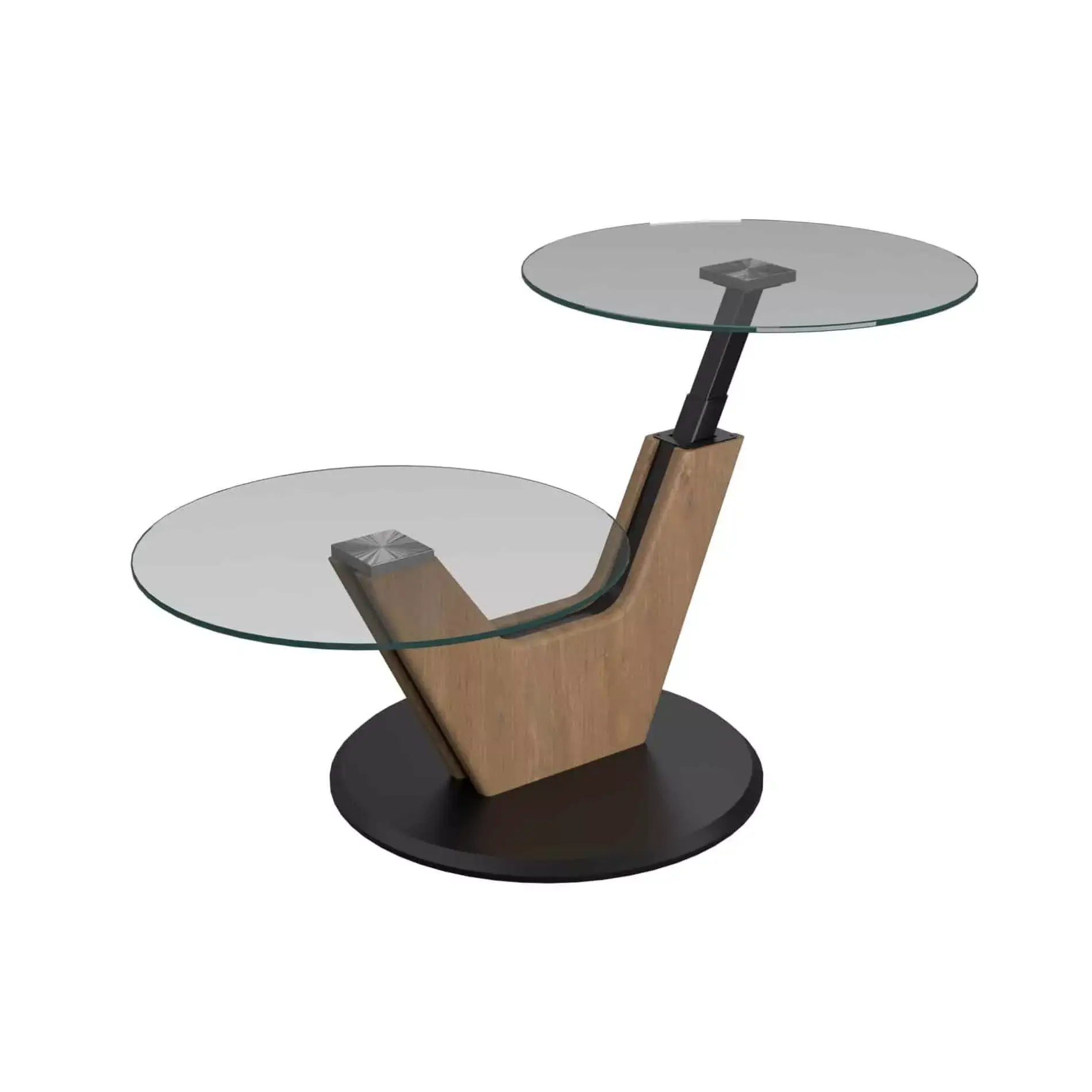 Stylischer Couchtisch mit Tischplatte in Klarglas 8 mm (ESG), Gestell llse Hydro Lift Mechanik anthrazit metallic lackiert, Bodenplatte MDF anthrazit metallic Schliffoptik lackiert, Rollen, Beizton Klarglas/wildeiche bianco lackiert, BHT ca. 110/45-73/60 cm
