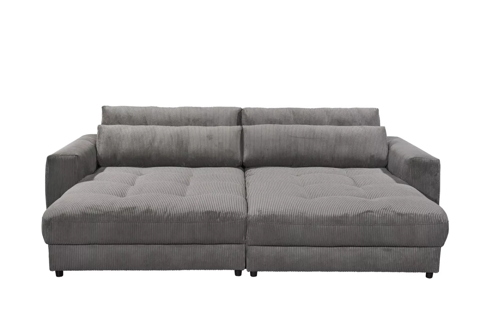 Angesagter, moderner Loveseat inklusive 2 Rücken- und 2 Nierenkissen, Bezug Cordstoff Zoom 21 ash - 92%Polyester/8% Nylon, Gestell aus Holzwerkstoffen, Sitz Nosagunterfederung, Rücken Schaumstoff, Rückenkissen Flockenfüllung, Rücken echt, Kunststofffüße, Liegefläche ca.234x182cm, BHT ca.292x90(74)x194cm, SH ca.43cm, ST ca.53(98)cm