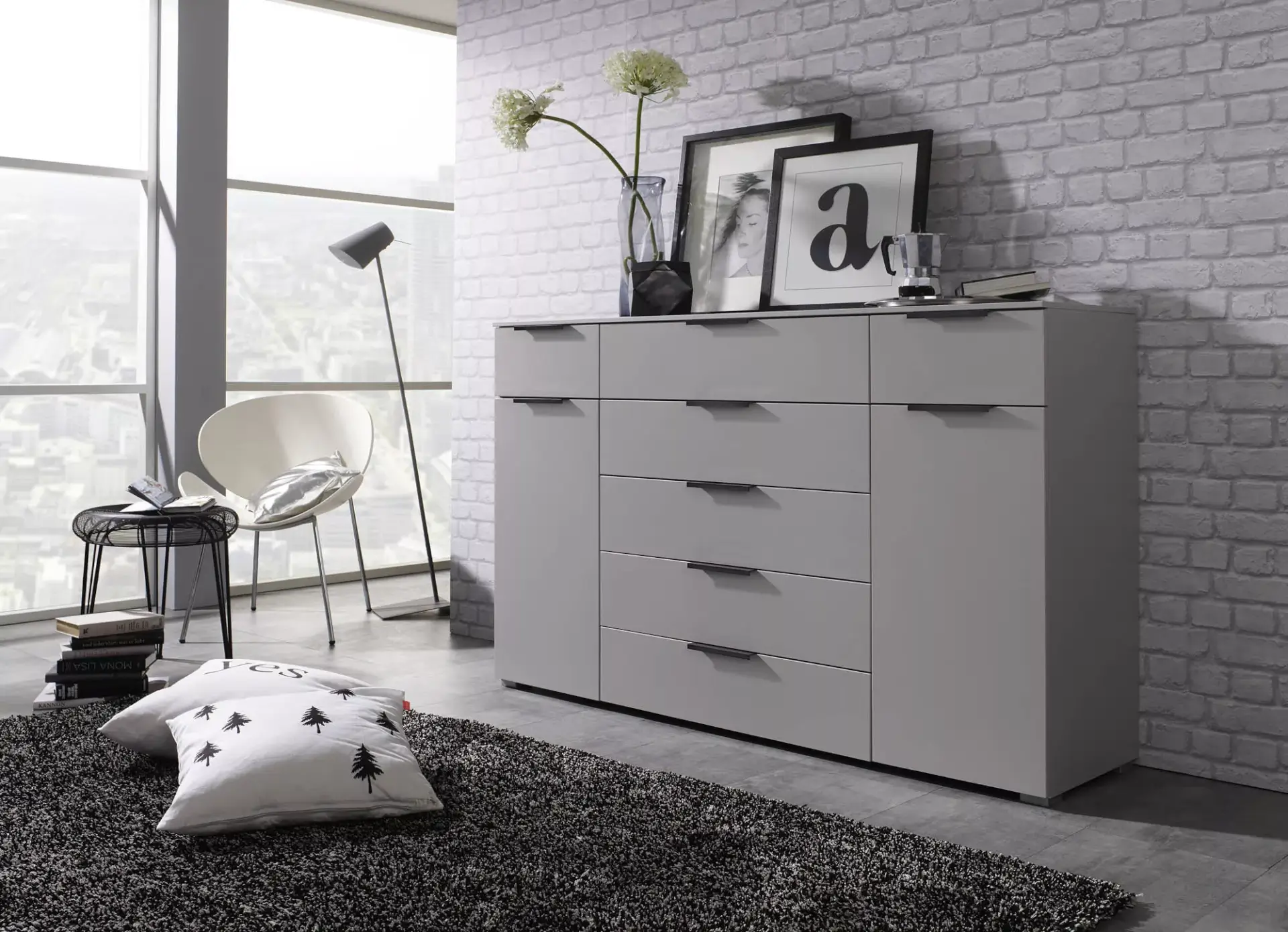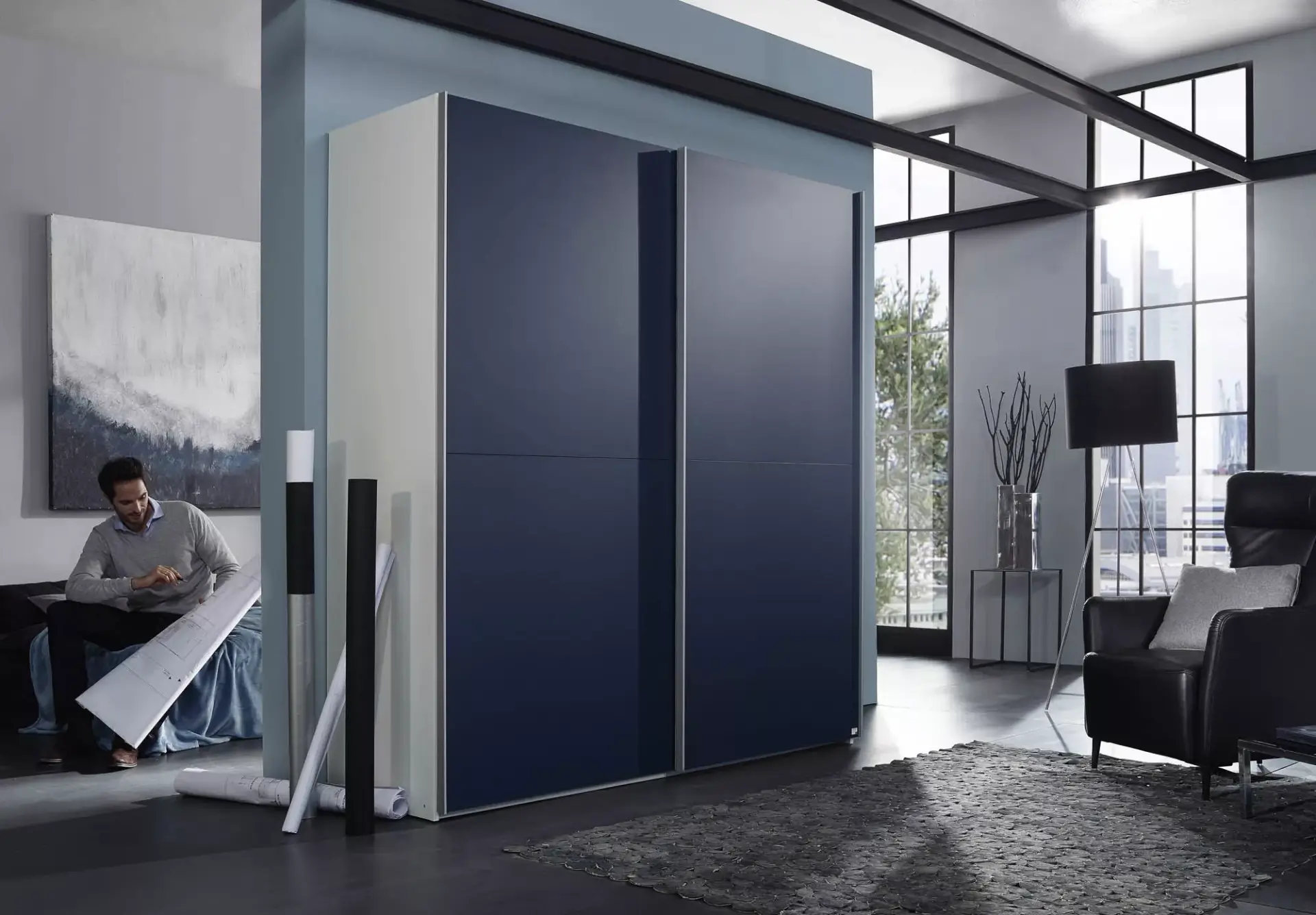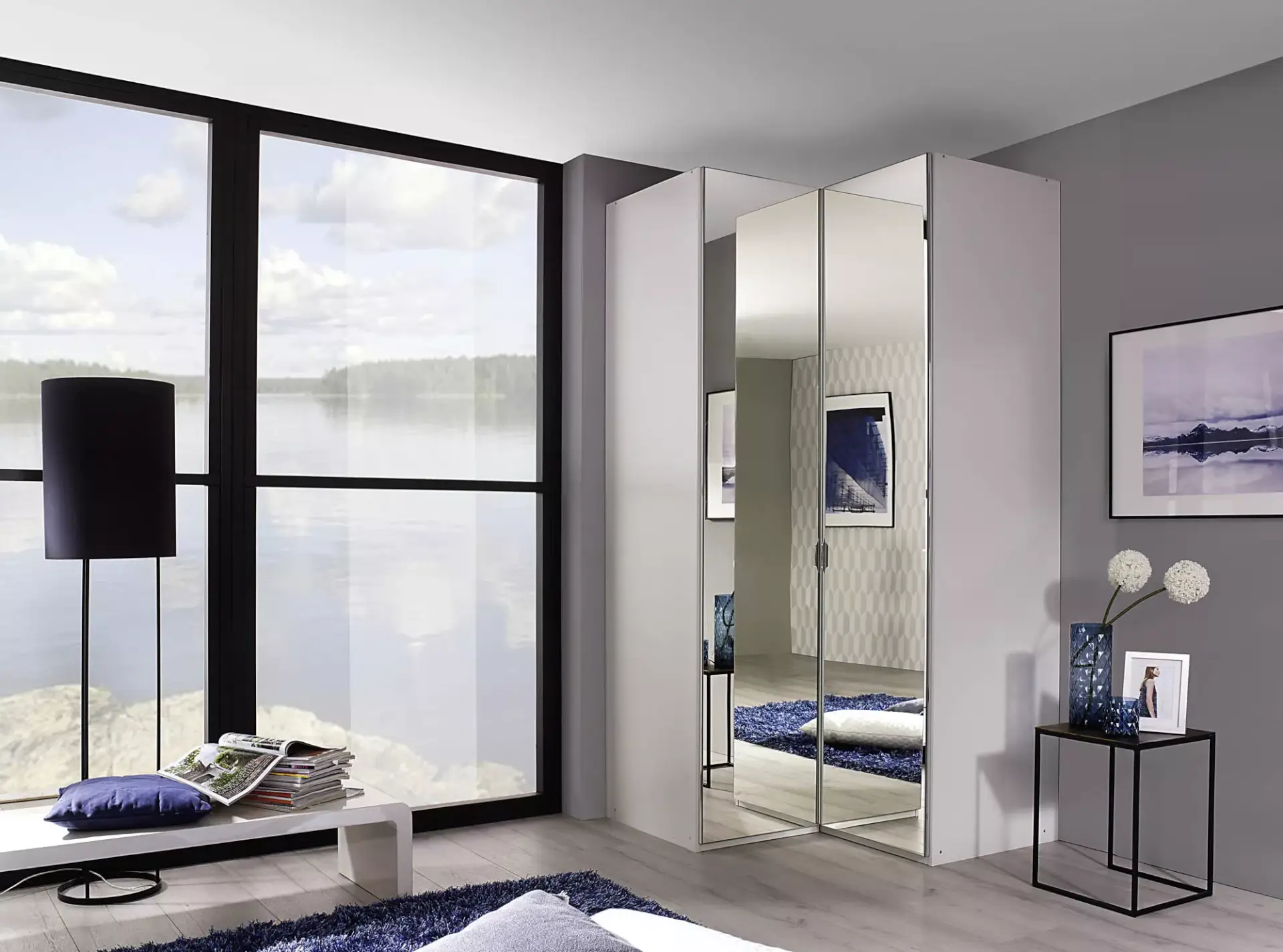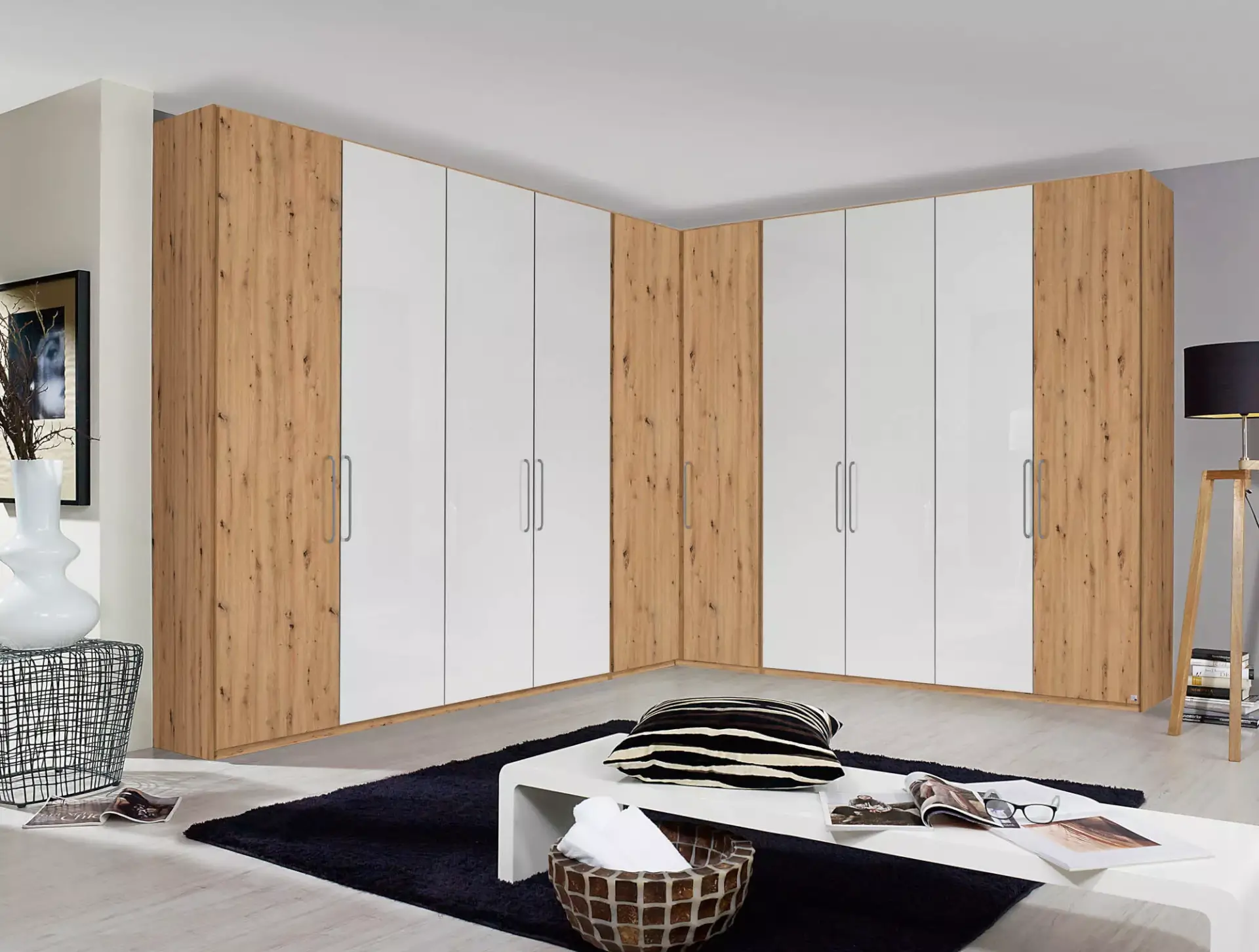 Modernes Schrankprogramm in vielen Front- und Korpusfarben mit einem großen Beimöbelprogramm.