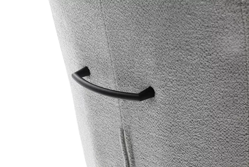4-Fuß-Stuhl mit Armlehnen & Griff und einen runden, konischen schwarz matt lackiertem Gestell. Ein Strukturgewebe aus 100% Polyester mit Keder schmückt den die Sitz- und Rückenfläche. Beachten Sie unseren Taschenfederkern - Luxus Komfortsitz. 180 ° drehbar mit Nivellierung.