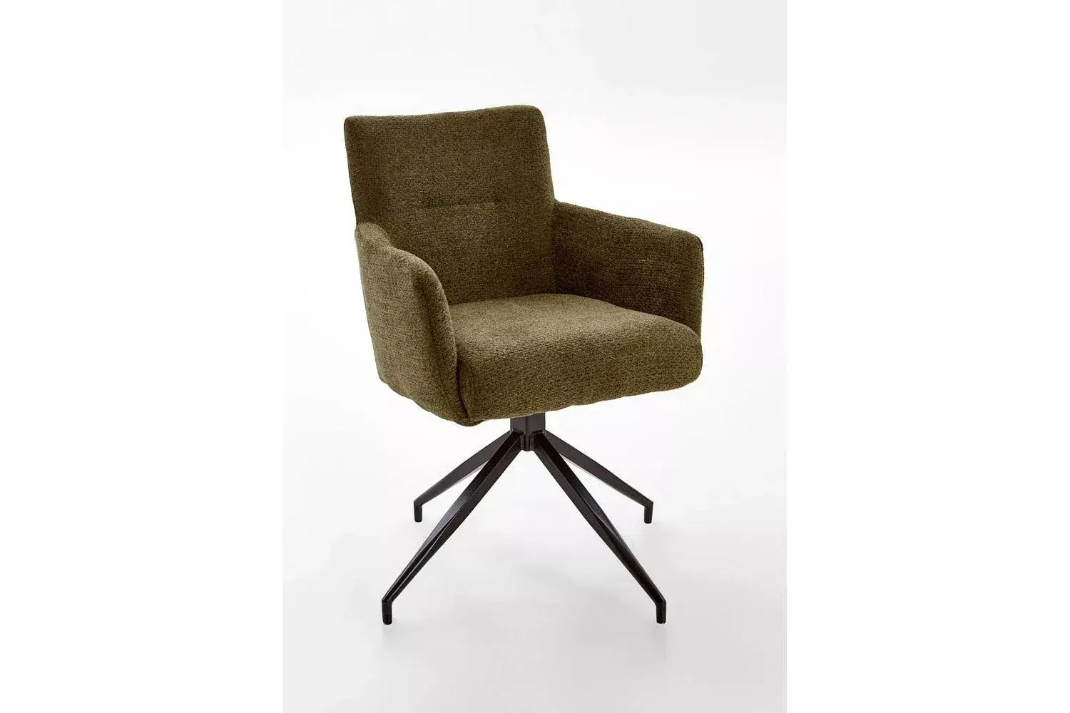 Schalensessel mit schwarzem Stativ-Gestell in Eisen schwarz, 180° drehbar mit Rückholfunktion, Sitzfläche mit Micro-Taschenfederkern. Bezugsstoffe in Chenille " Retro Bliss " green, aubergine und grey