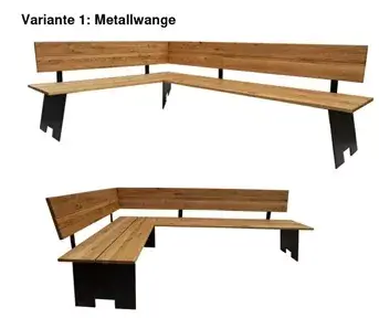 Eckbanksystem in Eiche massiv rustik geölt, mit Metallgestell anthrazit oder schwarz oder Holzwangengestell. Erhältlich in 4 Größen. Kurzer Schenkel links oder rechts und Einzelbänke in 3 Breiten. Wählbar mit oder ohne Rückenlehne, passende Sitz- u. Rückenkissen in verschiedenen Stoffen in vielen Farben.Produktübersicht