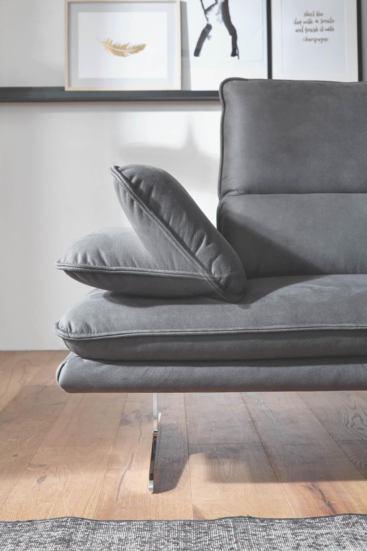 Diese Wohnlandschaft spricht für luftig-leichte Eleganz. Klare Formen sowie die luftig-leichte Kufe sorgen für viel Bodenfreiheit in stilvollen Räumen. Die funktionale Sitztiefenverstellung wird optimal durch flexible Kopfstützen uns Seitenteile ergänzt. Die elegante Brise, Metallfarben für die Füße sowie der farblich abgesetzte Kontrastfaden machen dieses Lieblingssofa zum perfekten Wohntraum.Beachten Sie unseren Typenplan!