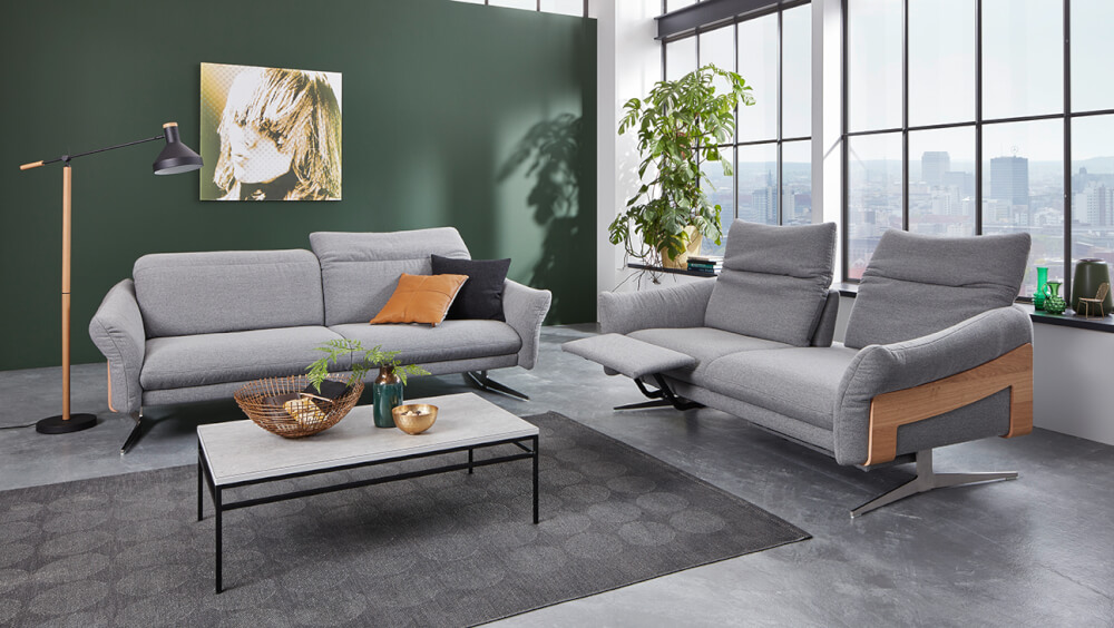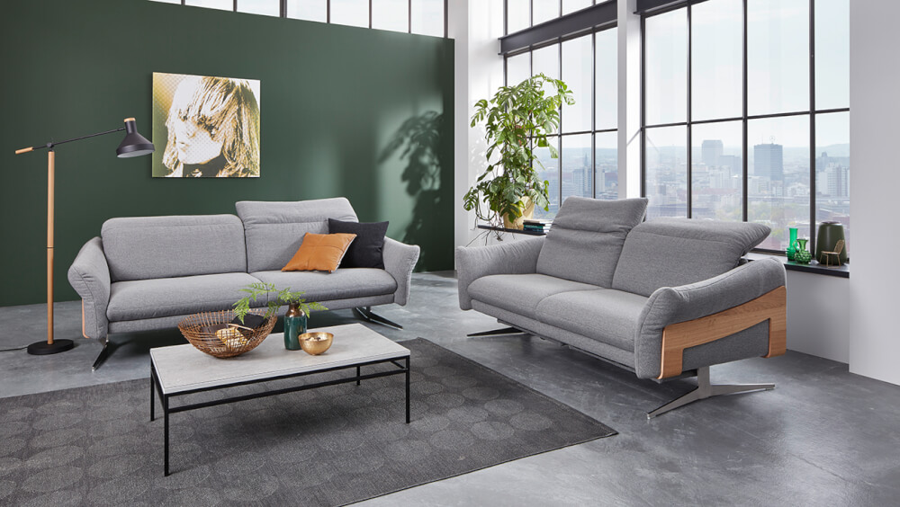 Dank der filigranen Füße weist das Sofa PROmotion 1809 einen besonders leichten, nahezu schwebenden Charakter auf. Hier haben Sie die Wahl zwischen anthrazitfarbenen Füßen und solchen in gebürsteter Edelstahloptik. Den Bezug Ihres neuen Sofas können Sie ebenfalls individuell Ihren Geschmacksvorlieben und Ihrem Wohnstil anpassen. Zur Auswahl stehen mehr als 600 verschiedene Stoffe und 200 Lederarten in vielen unterschiedlichen Farben und Qualitäten. Wie auch immer Ihr neues Traumsofa aussehen mag: Himolla gewährt Ihnen in jedem Fall eine fünfjährige Garantie auf Schaum, nicht-bewegliche, tragende Teile sowie auf viele Bezüge.