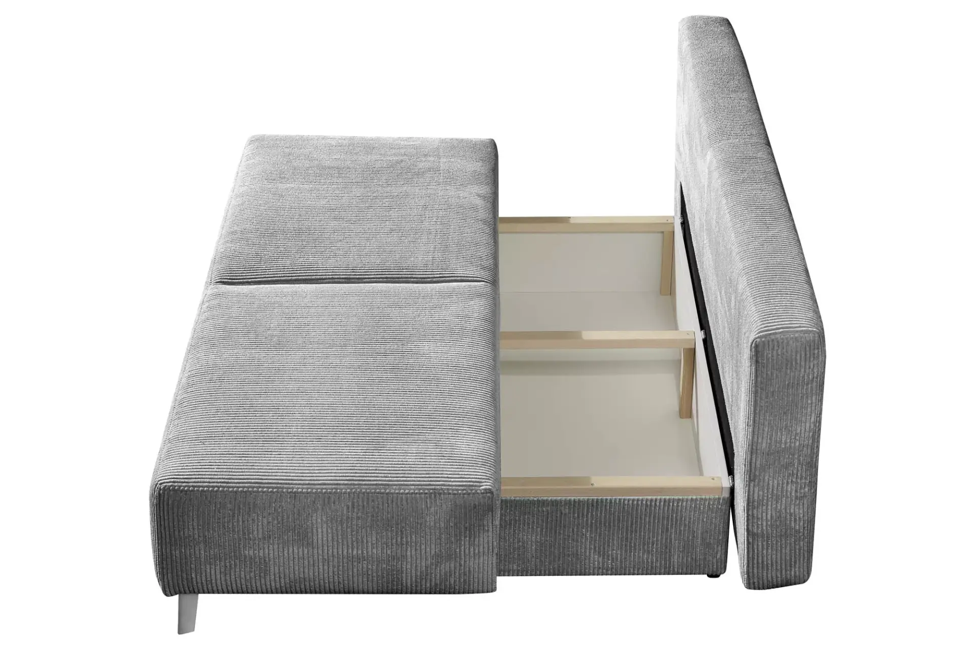 SANDY, ein Querschläfersofa mit Bettkasten und Rücken echt bezogen.