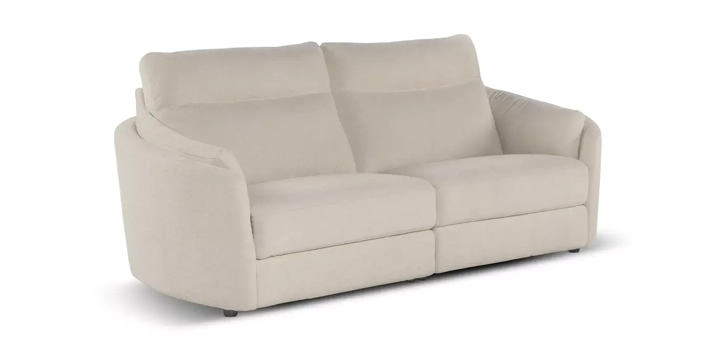 Das charakteristisches Design zeichnet sich durch geschwungene, umhüllende Armlehnen aus, die sanft zur Rückenlehne ansteigen und eine elegante, fließende Linie formen, ergänzt durch ein weiches Armlehnkissen.