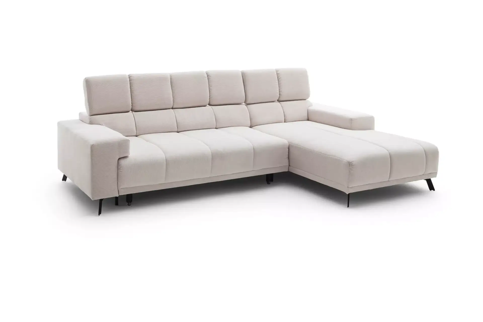 Wohnlandschaft mit Bezug Fjord 23 Beige (PG1), Nosagunterfederung, Bonellfederkern, Metallfüße schwarz (alternativ creme oder chrom), inklusive elektrischer XXL-Sitztiefenverstellung (60cm), 3 manuelle Kopfteilverstellungen, inklusive 3 Flatterkissen, Schenkelmaß ca. 285x201cm, Liegefläche ca.130x222cm, Höhe ca.79 bis 99cm,Sitztiefe ca.70 bis 130cm, Sitzhöhe ca.45cm, auch seitenverkehrt erhältlich.