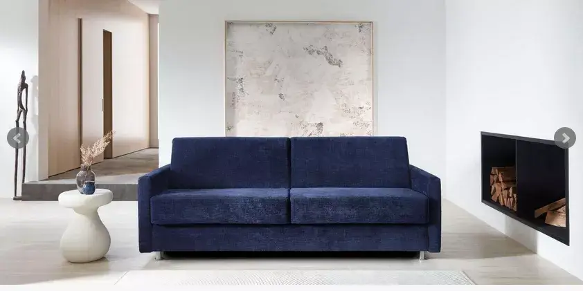 Ein modernes Schlafsofa oder Couch mit 2 wählbaren Armlehnen, Kaltschaumpolsterung im Sitz, zweigeteiltes Lattenrost mit 7-Zonen-Sensoformmatratzen optional gegen Aufpreis mit 7-Zonen-Gelform-Wendematratze für weichen und harten Liegekomfort. Liegefläche 160 und 180 x 200 cm mit zweigeteilten Lattenrost. Rückseite im Originalstoff bezogen. Legere Polsterung ist designtypisch, daher Wellenbildung gewollt.