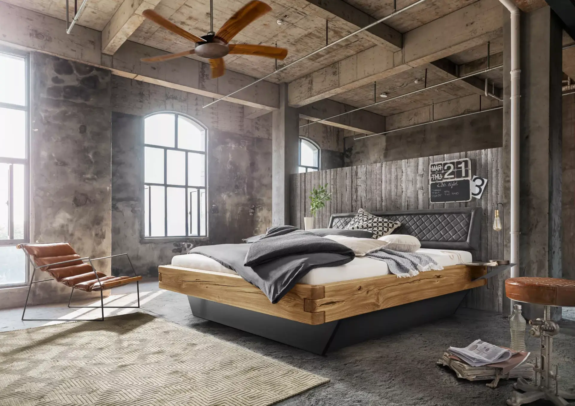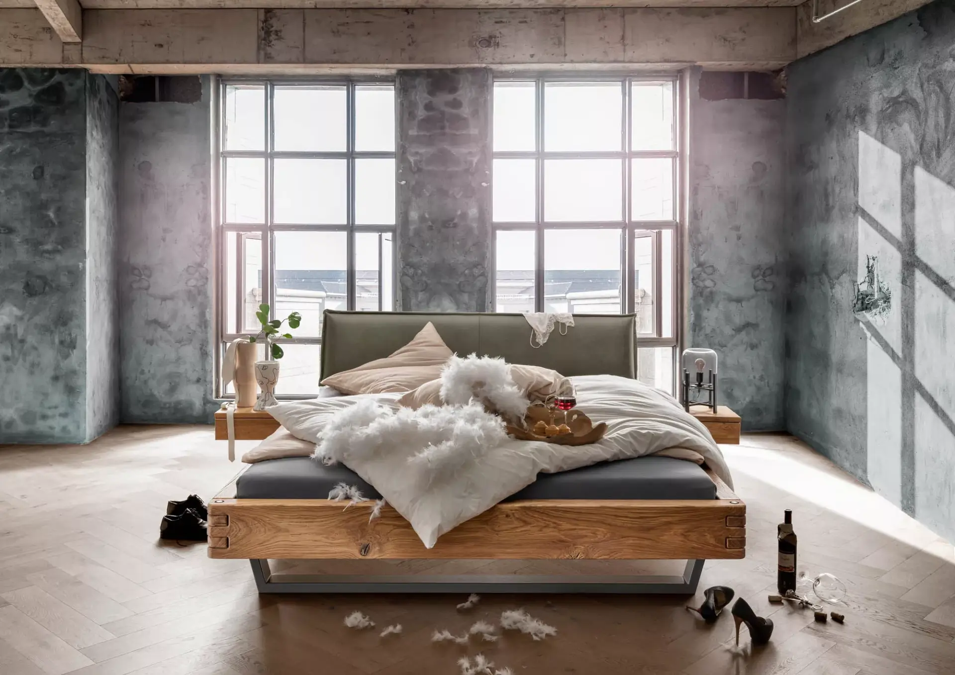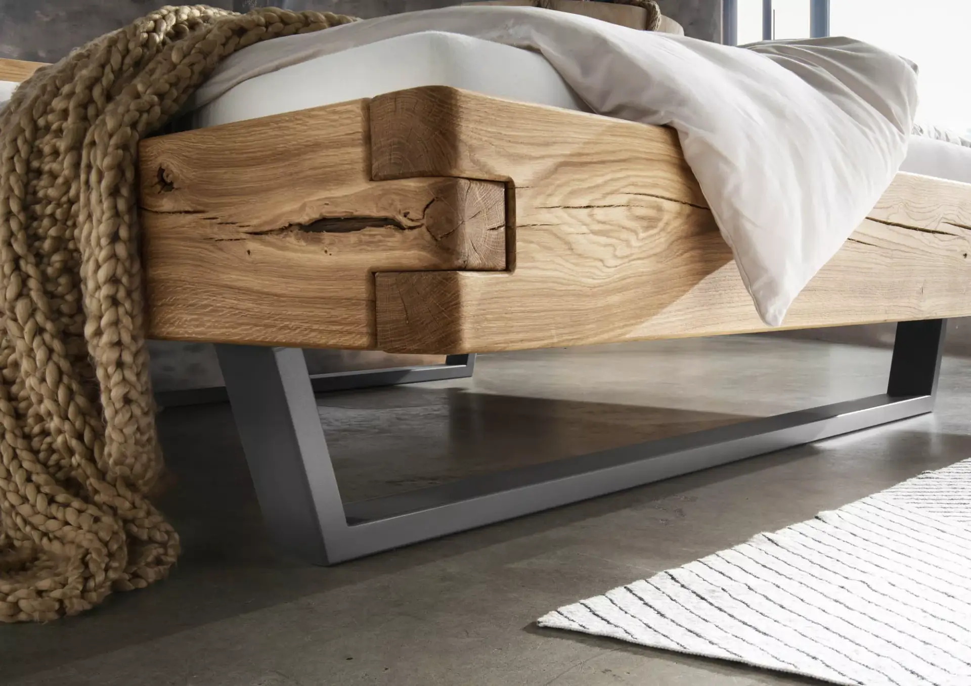 Balkenbett 820 in Wildeiche natur geölt. Erhältlich in verschiedenen Größen, Bettrahmen, Kopfteilen und Füßen.