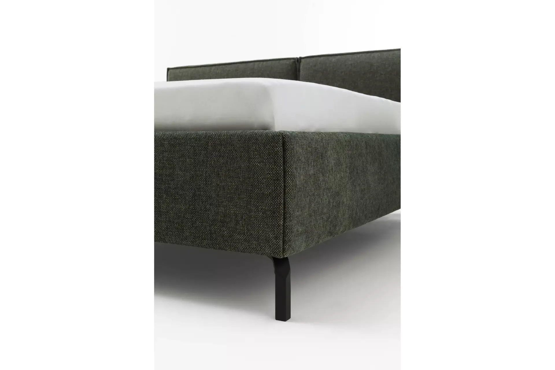 Wunderschönes Polsterbett 180 x180 cm, mit Metallfuß 481 matt und dem Bezugsstoff Novara Clean olive. Alle Betten sind mit Mittelsteg versehen. Sie haben ein Stauraumfach und können aus einer großen Auswahl an Fußvarianten auswählen.