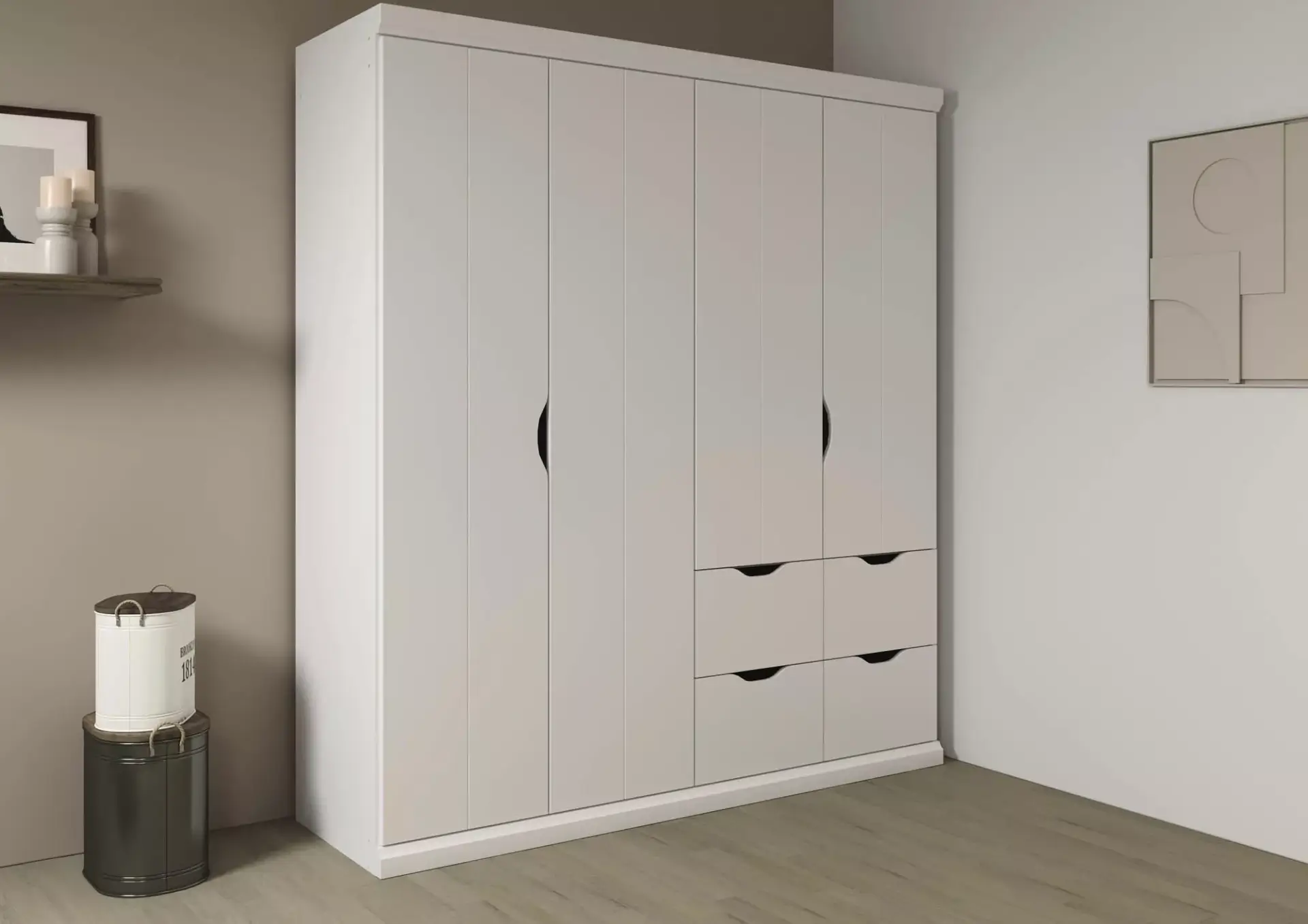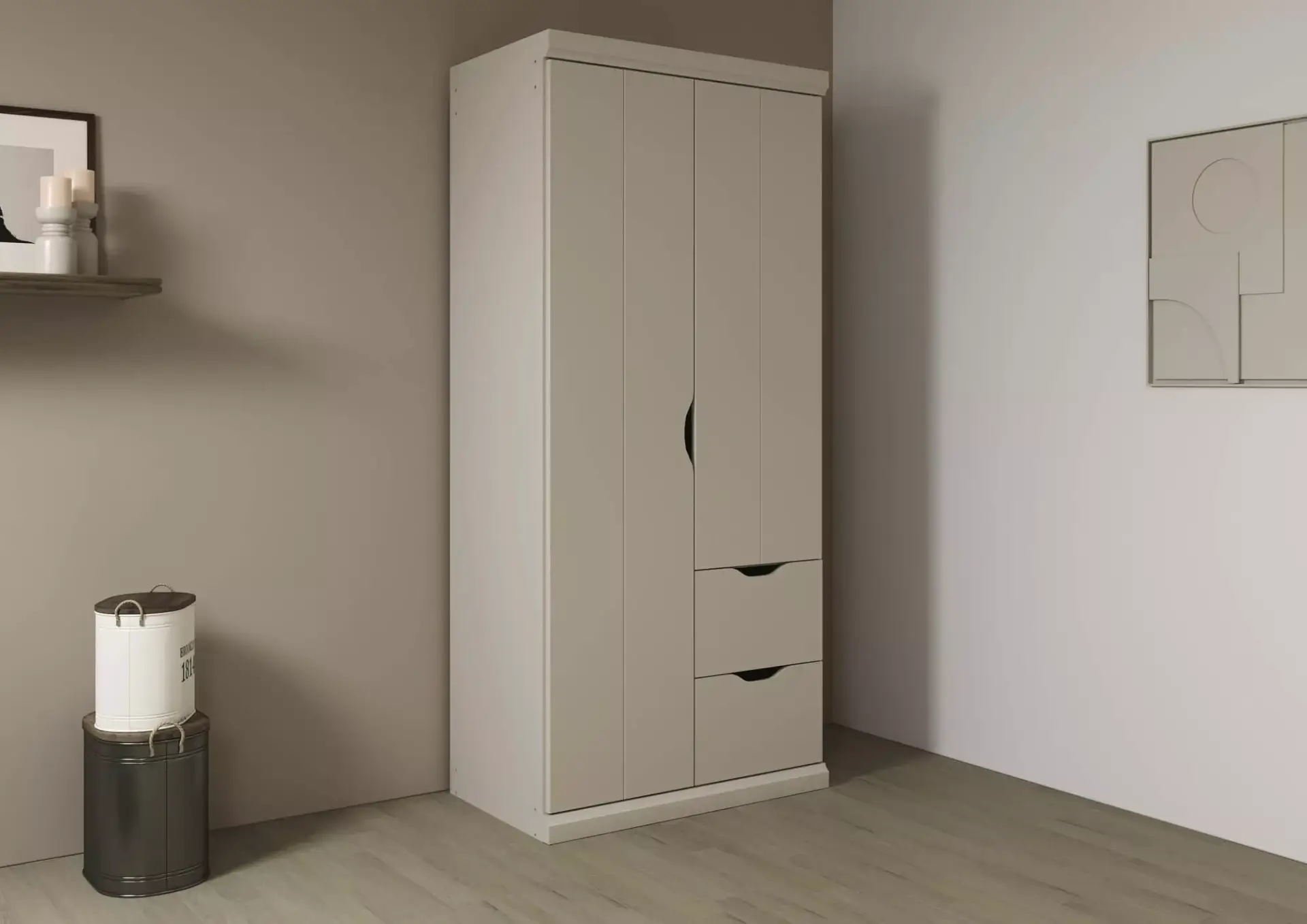 Drehtürenschrank in Dekor Champagner.