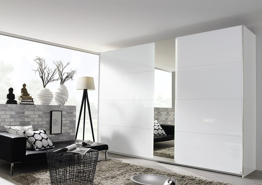 Mit asymmetrischen Design, einer vertikalen - optional lichtumrandeten - Spiegelauflage und glänzenden Fronten in Farbglas machen die Schwebetürenschränke auf sich aufmerksam. Mit durchdachter Innenaufteilung, in der Höhe variabel einsetzbaren Kleiderstangen und Fachböden bieten diese Schränke ordentlich Verstaumöglichkeiten. Zu den Schränken passende Nachttische und Kommoden finden Sie bei dem Programm 20 Up hier bei uns.