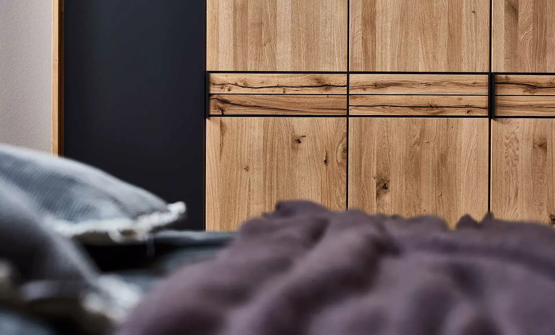Diese neue Schlafzimmer Serie wird geprägt durch den stark gebürsteten Balkeneiche Akzent. Diese schöne , greifbare Haptik dieses Akzentes und die ansprechende Optik sind der absolute Hingucker. In Ihrem Schlafzimmer entsteht eine gemütliche entspannte Atmosphäre mit Erholungseffekt. Durch die optionale LED-Beleuchtung können Sie diesen Effekt unterstreichen. Sie erhalten die Bettanlage, Kleiderschränke, Nachtkonsolen und auch Kommoden in unterschiedlichen Breiten und auf Anfrage auch in Sondermaßen!