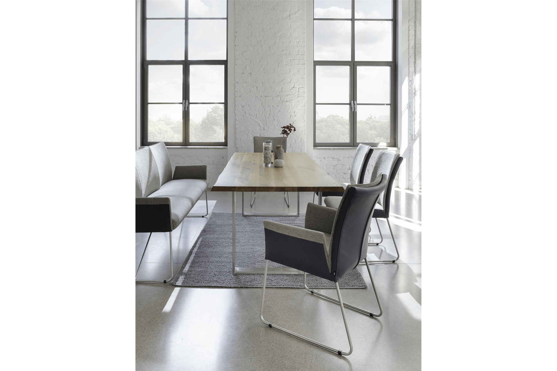 Planen Sie Ihren Stuhl, der am besten zu Ihren Bedürfnissen passt. Wählen Sie zum Beispiel den Stoff in Rücken innen und Sitz, und Leder im Rücken außen. Oder einfarbig, schlicht und edel. Sie können auch optional die passende Sitzbank auswählen.