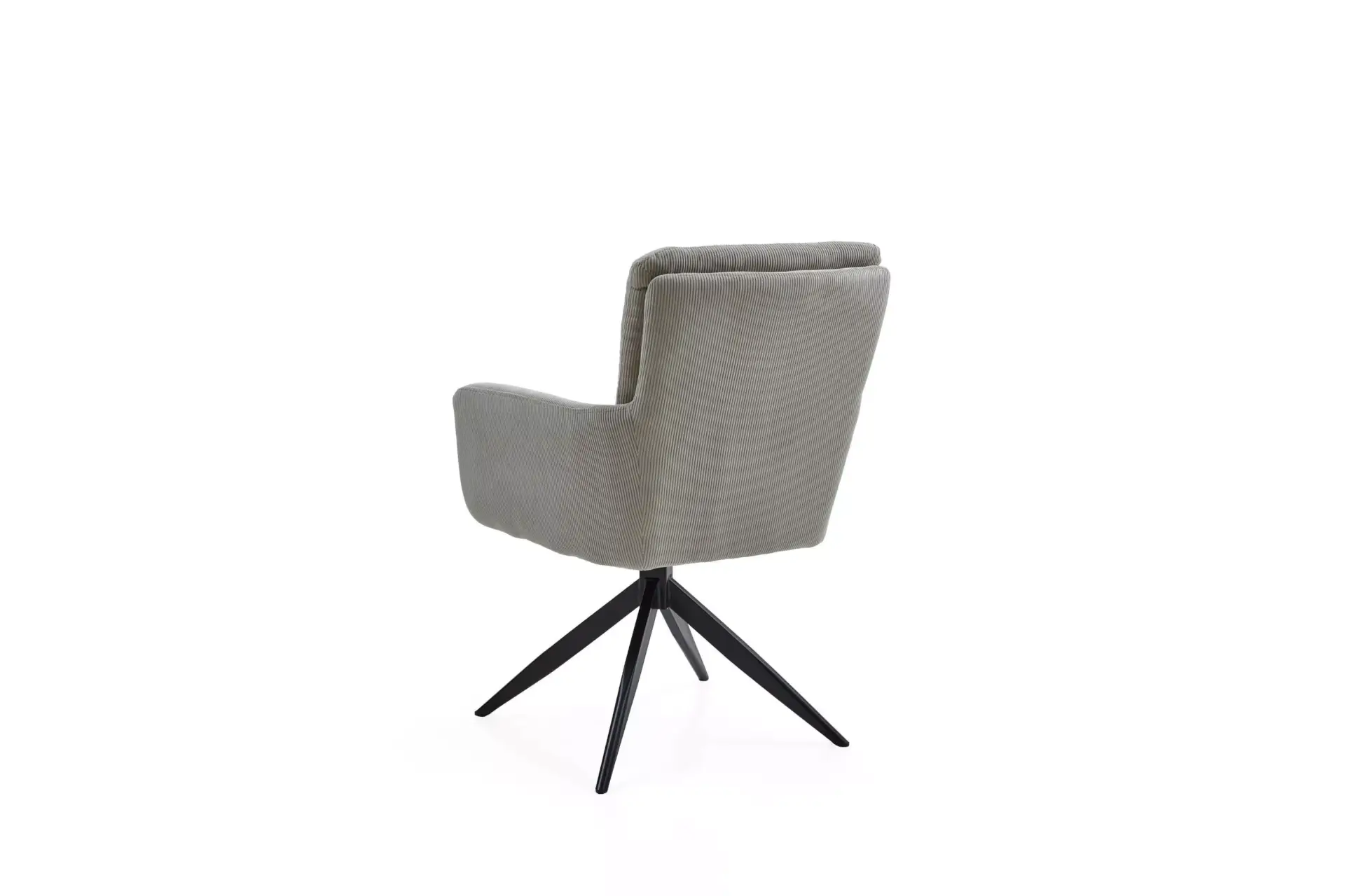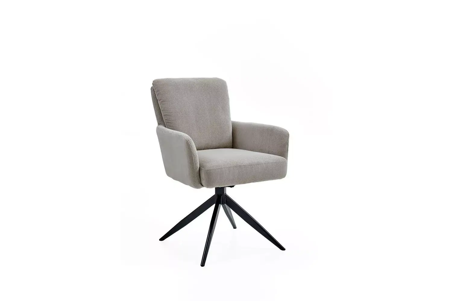 Armlehnenstuhl mit schwarzem Stativ-Gestell Eisen schwarz, 180° drehbar mit Rückholfunktion . Bezug Cord Norway sand, Sitz mit Micro-Taschenfederkern.