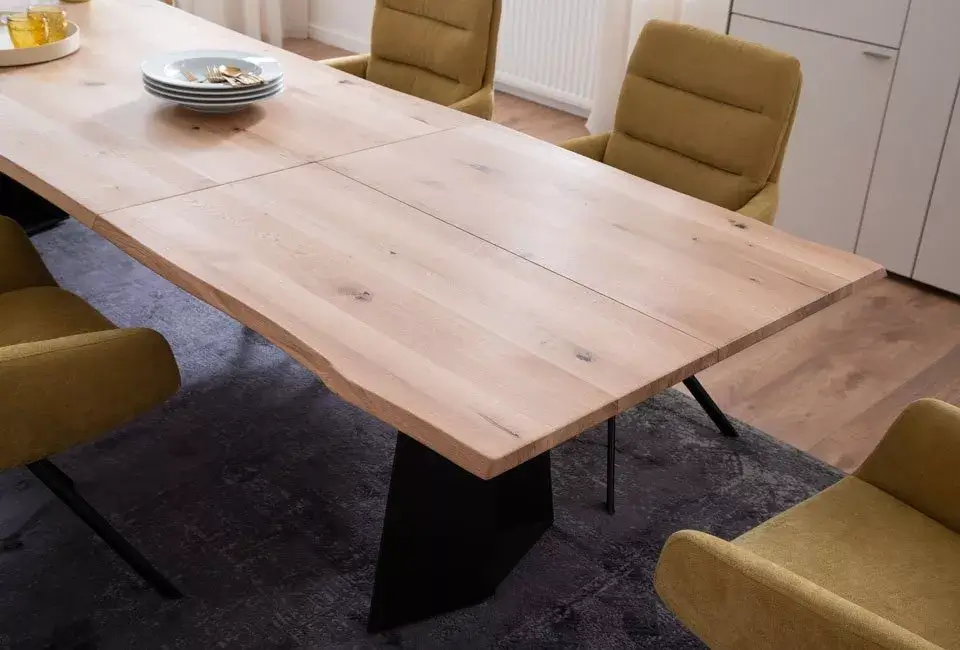 Funktionaler, wunderschön aussehender Esstisch in vier Holzausführungen, optionalem Frontauszugssystem mit Klappeinlage und in vier festen Größen.