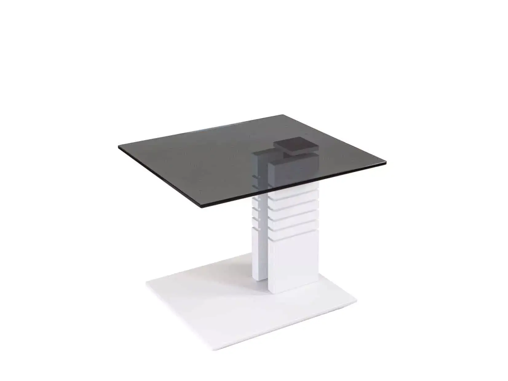 Platte Parsolgrau 10 mm (ESG), Gestell Illse Hydro Lift Mechanik, Liftsäulenverkleidung Wildeiche massivholz, Bodenplatte Wildeiche furniert, Metallteile anthrazit metallic lackiert, Rollen, Beizton Parsolglas grau/wildeiche bianco lackiert, BHT ca. 55/47-65/47 cmProduktübersicht