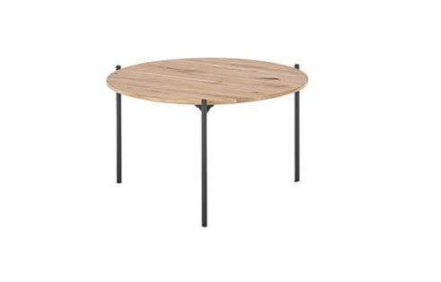 Modischer Couchtisch mit Tischplatte in Eiche massiv geölt, Schweizer Kante, durchgehende Lamelle, Gestell Metall schwarz