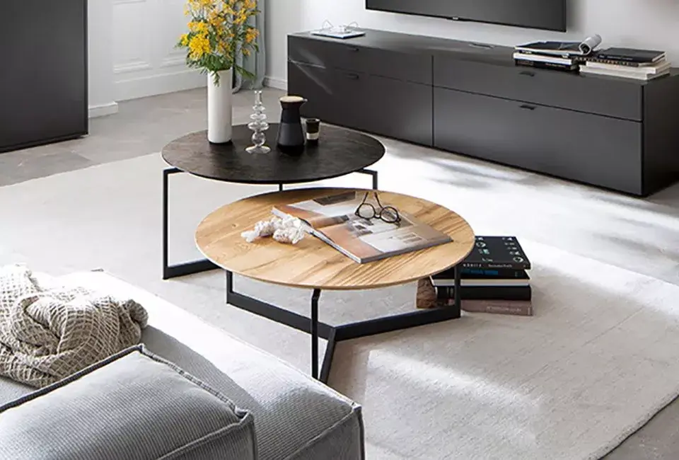 Couchtisch ELBA - Holz kombiniert mit Keramik und Metallgestell.