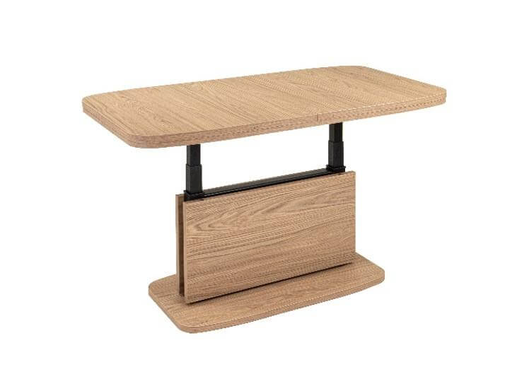 - Gestell mit Ilse - Lift- Mechanik anthrazit-Metallic lackiert, Gestellwangen Melamin Dekor Eiche Casella, Bodenplatte Melamin Dekor Eiche Casella mit Gleitstopfen.