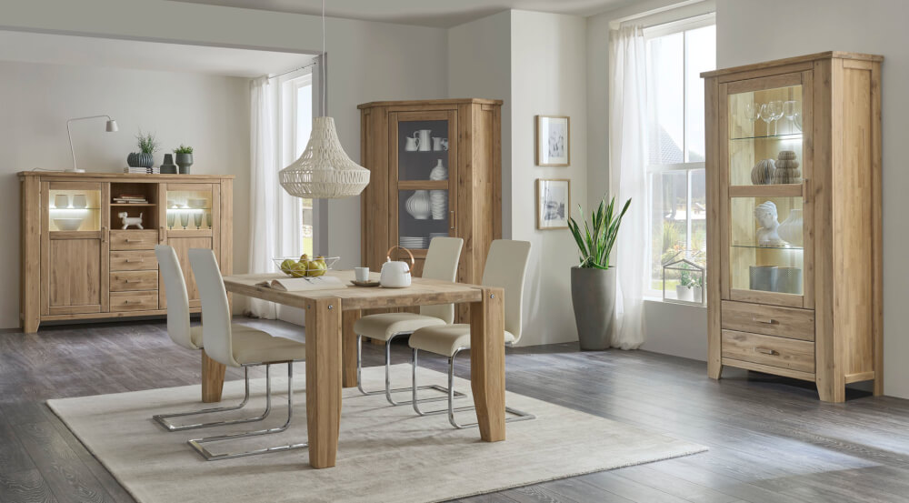 Gemütliches Ambiente und edel in Design zeigt sich das Programm " Loft " in der Ausführung Wildeiche massiv natur, gewachst und geölt.Ein umfangreicher Typenplan lässt Ihrer Phantasie freien Lauf und hilft Ihnen zu Ihrem neuen Wohlfühlraum!