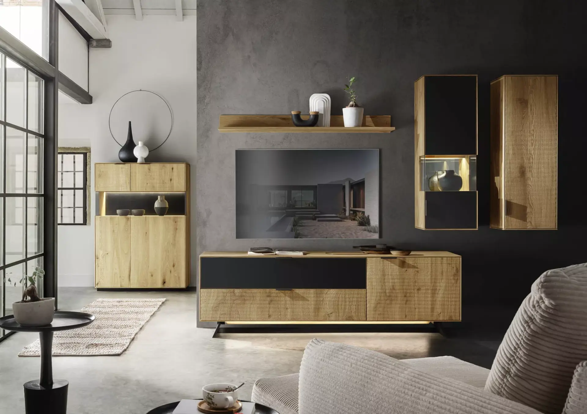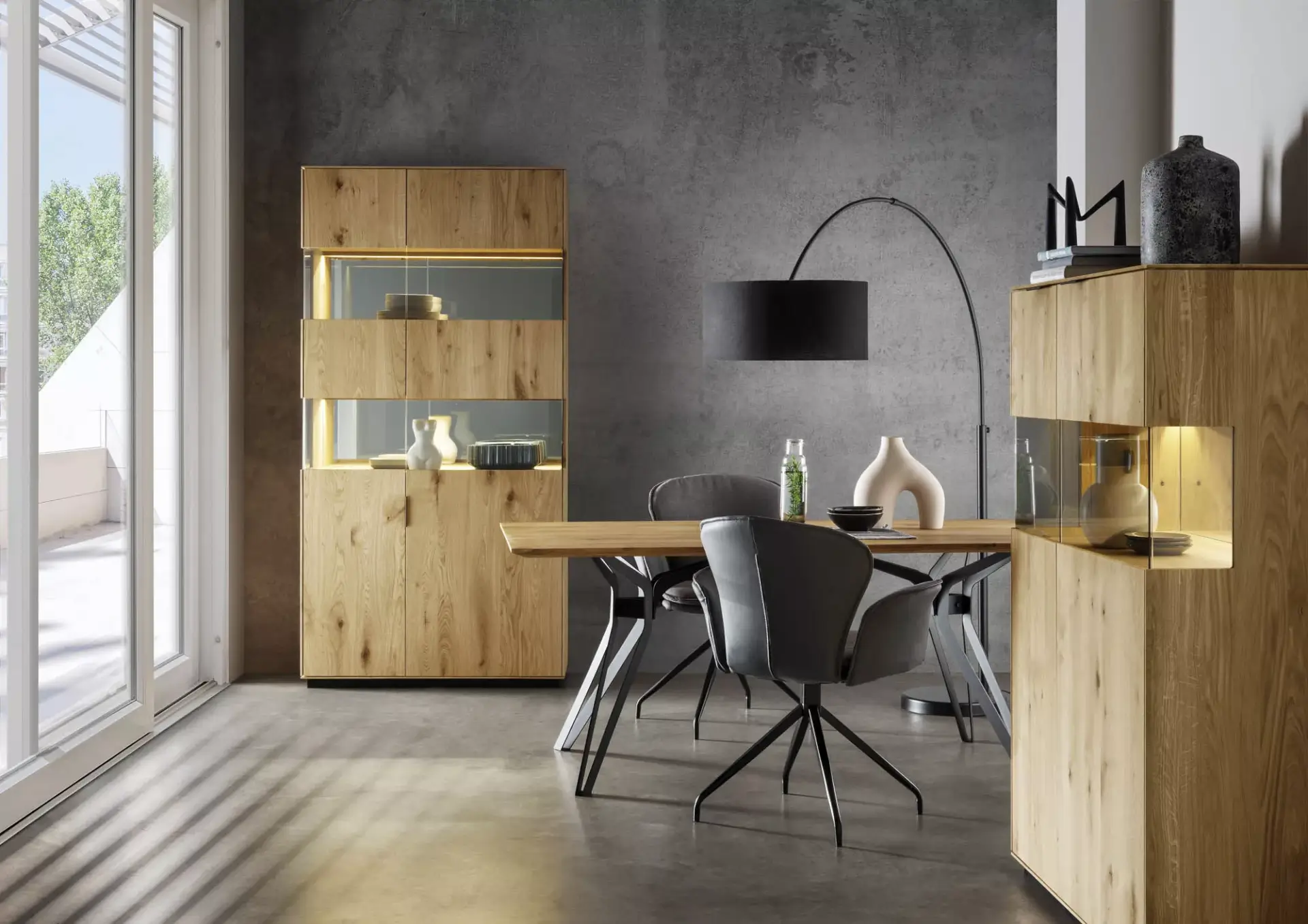 Diese Kollektion aus Wildeiche besticht durch ihre Vielseitigkeit. Die klare Formsprache der Lugano Möbel verleiht Ihrer Wohnumgebung eine geradlinige, moderne und dennoch schlichte Ästhetik. Mit unzähligen Gestaltungsmöglichkeiten bietet Lugano eine breite Palette an Optionen für das Wohn- und Speisezimmer. Die Möbel können entweder hängend, stehend mit einem Sockel oder einem beleuchteten Untergestell konfiguriert werden. Des weiteren stehen unterschiedlichen Holz- und Glasfronten sowie diverse Rückwandvariationen zur Verfügung. Erleben Sie die eine einzigartige Kombination aus Qualität, Ästhetik und Funktionalität.Produktübersicht
