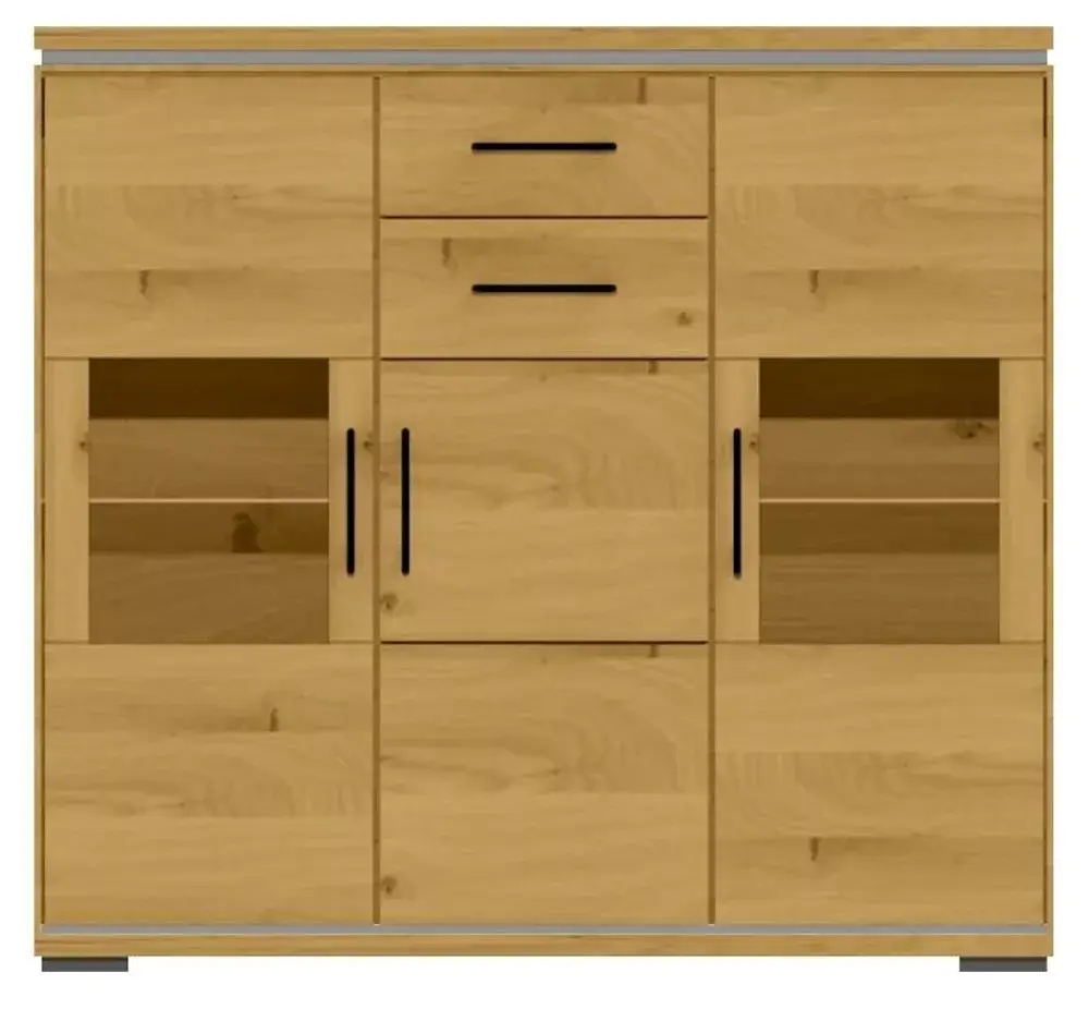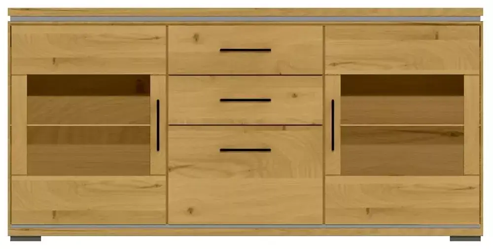 - Front massiv, Korpus außen in Echtholzfurnier, innen in pflegeleichtem Dekor