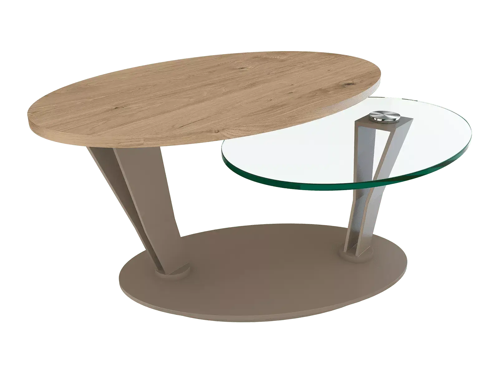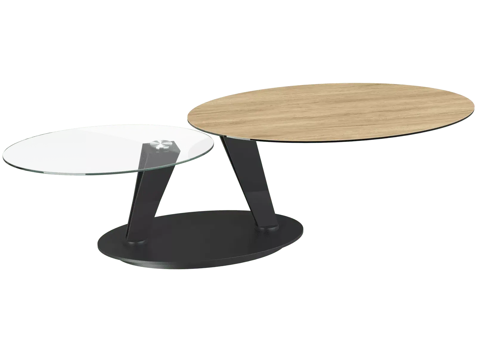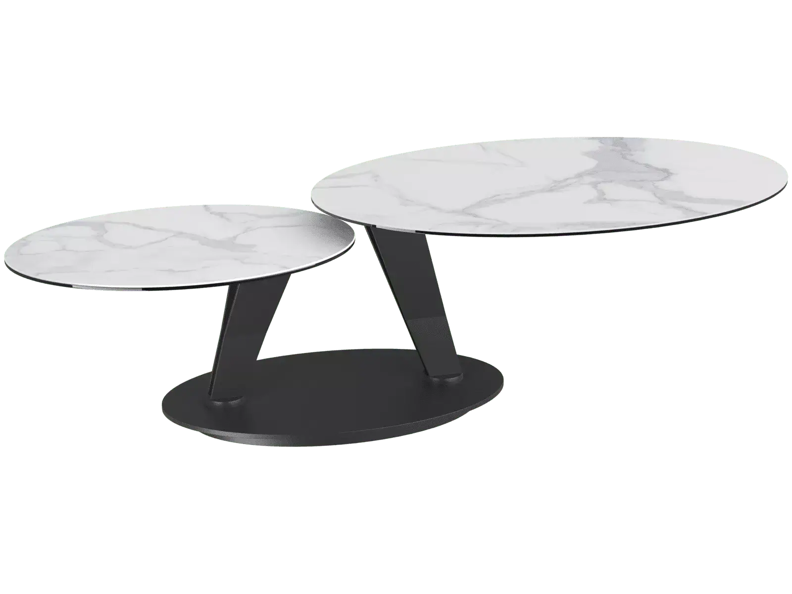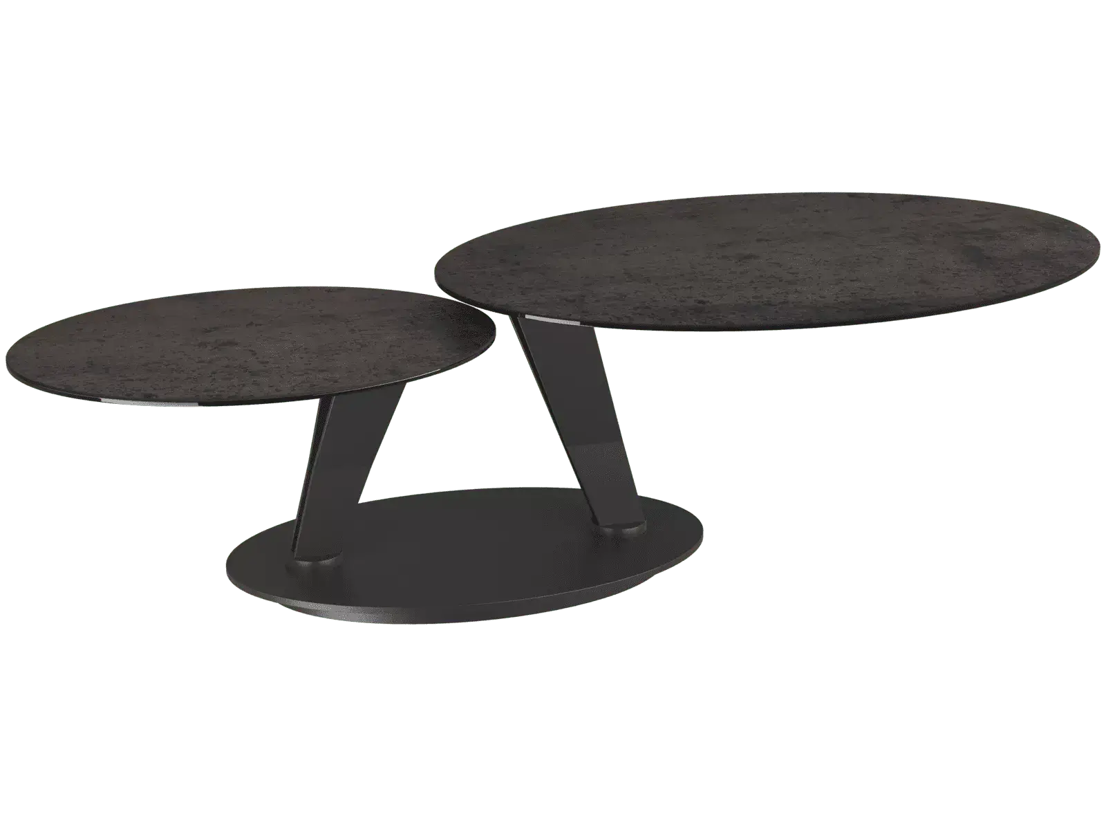 Mit seinen zwei sich synchron drehenden ovalen Platten, wird Ovalia Ihr Zuhause verschönern. Auf dem schwarz lackierten Gestell aus Edelstahl befindet sich eine einzigartige rostbraune Keramikplatte mit ihrem modernen Design.