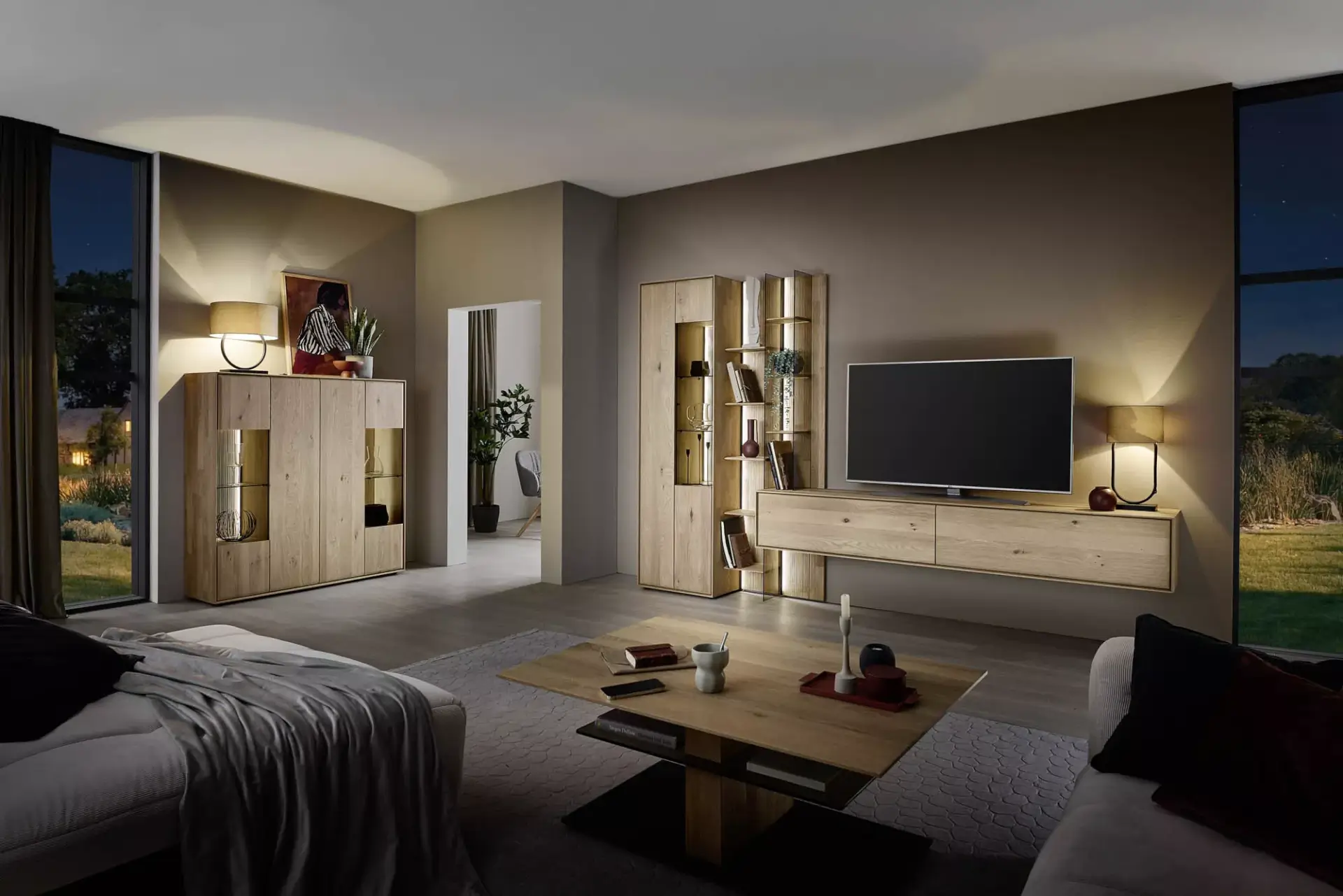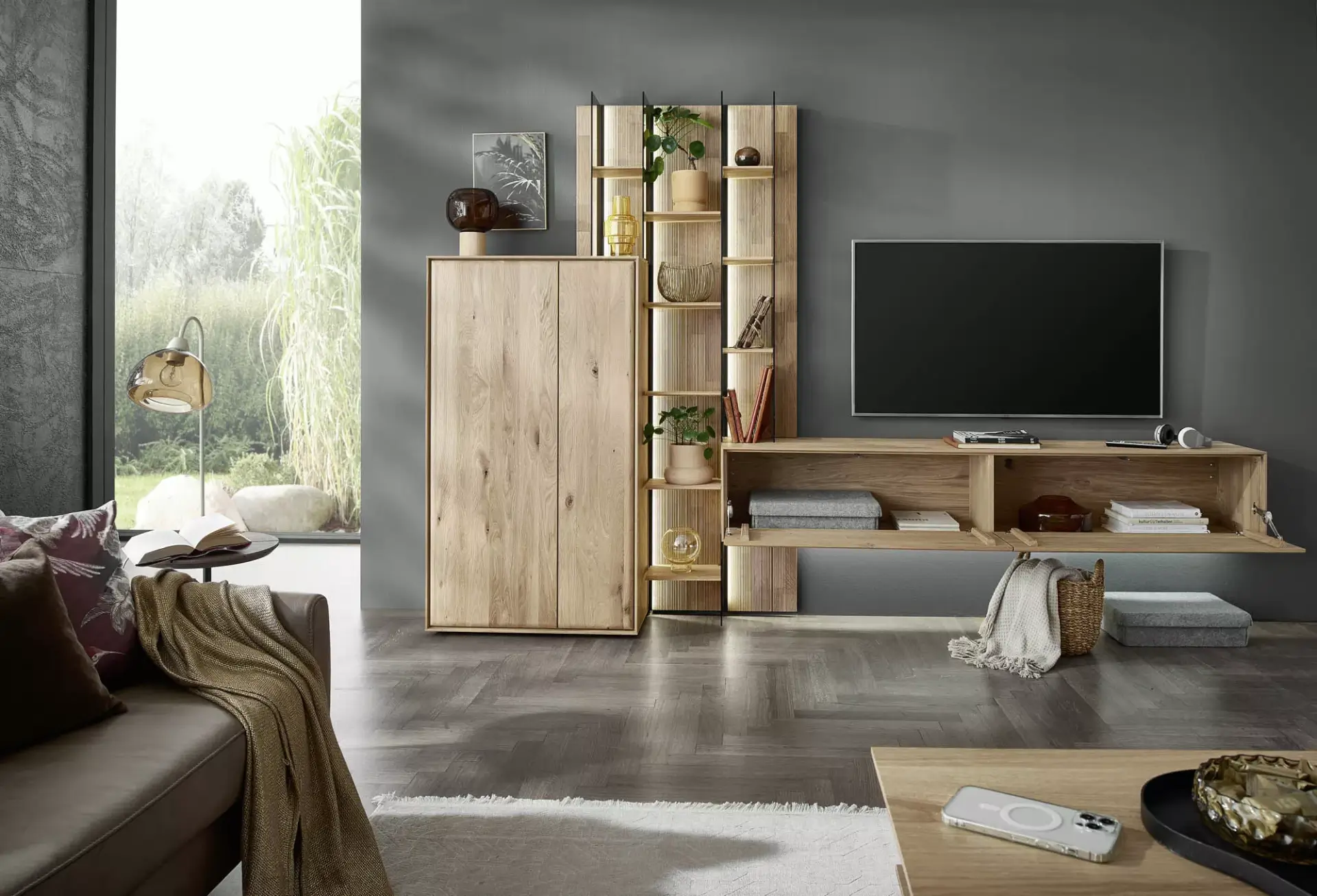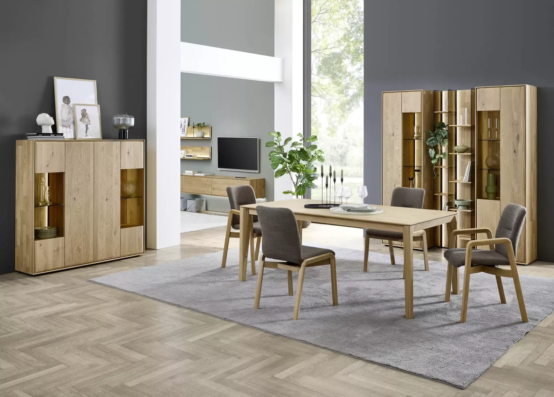 Passgenaue Möbel für Ihr Zuhause. Entdecken Sie dieses umfangreiche Programm in Kerneiche Natur massiv gebürstet mit geschroppter Rückwand. Erweiterbar auf ein komplettes Esszimmerprogramm.
